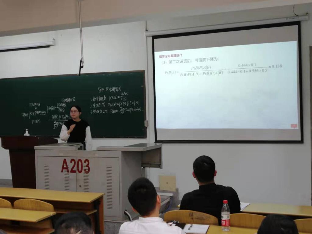 周全老师的选讲内容为《概率论与数理统计》中的“贝叶斯公式”,她以大家感兴趣的案例引入了贝叶斯公式的定义,深入浅出地讲授了贝叶斯公式的实际应用,并较好地融入了思政元素,润物细无声;贾静兰老师的选讲内容为《高等数学》中的“拉格朗日中值定理”,通过两个定理的对比,让大家对拉格朗日中值定理有了更深入的理解。两位老师着装典雅得体,教态自然大方,通过丰富的肢体表现,并借助多媒体等教学辅助设备,有层次、有重点地讲授了专业知识。总的来看,两位老师的授课信息量大,图文并茂,深入浅出,具有启发性,充分展示了我院青年教师较高的专业素养和过硬的教学本领。
