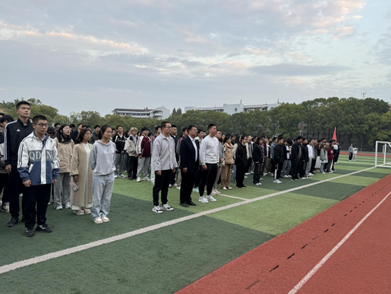 (通讯员 王晓明 于志浩 胡珮)11月4日早上7点我院在西校区操场举行升旗仪式。院党委副书记谷军老师、院团委书记黄何老师、辅导员吴朝晖老师以及全体大一新生相聚于此。本次升旗仪式由刘芯彤主持。
