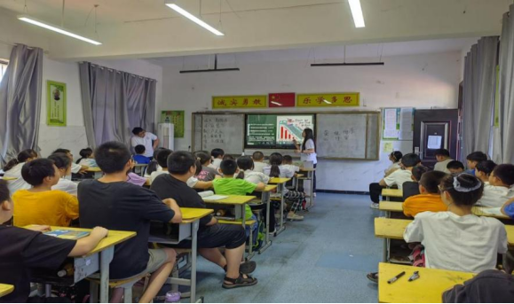 (通讯员 张诗雨)7月5日清晨,伴着朝阳和蔚蓝的天空,微风轻拂,“抗大 .树梁”数学科普志愿服务团全体队员提前一小时到达校门口,热情迎接同学们。面对着新面孔,学生们展现出不同程度的好奇和惊喜,有的好奇地打量,有的害羞地低头走进校园。很多家长也亲自陪同孩子进校,并与队员们交流如何学习、如何生活、如何成才。服务团全体队员始终以温暖的微笑和亲切的问候,迎接每一位学生和家长。随后,大家集体进班开展班会及开学第一课活动。