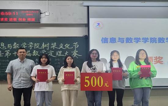 (通讯员 刘金于 孙鹏宇)为了提高学院学生的综合素质,培养大学生敏捷的思辨能力,激发学生对数学的积极性,提升学生对数学的兴趣。我院于5月4日下午3点在12教202举办第十三届数学定理大赛。院党委副书记袁海山、副院长李向军、院学工办主任严星、团委书记钟赛、数学与应用数学系主任严政、信息与计算科学系主任李小飞、副教授邹建、辅导员黄何、兼职辅导员黄才润莅临本次比赛,20级和21级部分同学参赛。本次活动由高胜和彭书静主持。