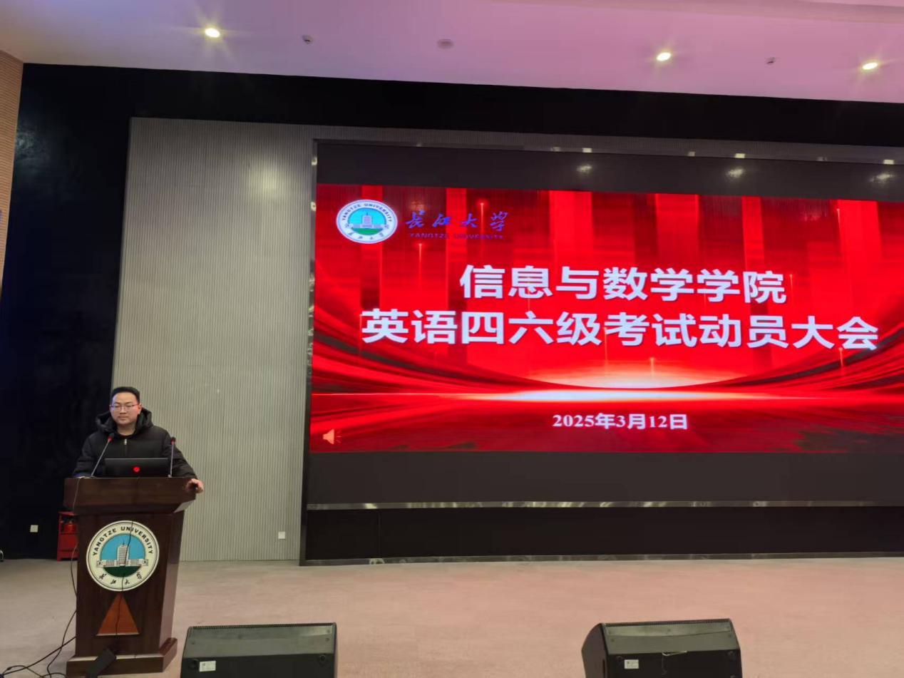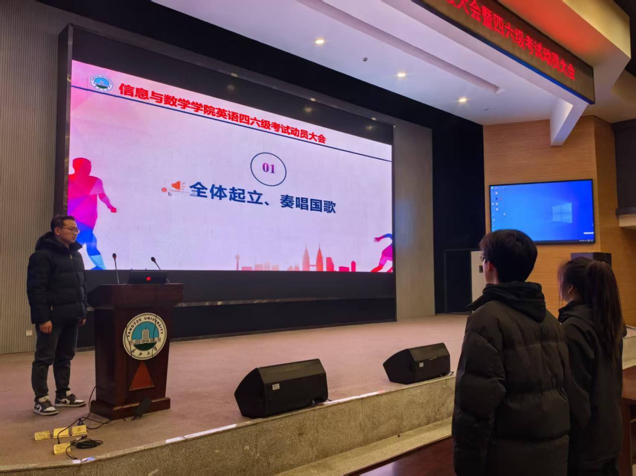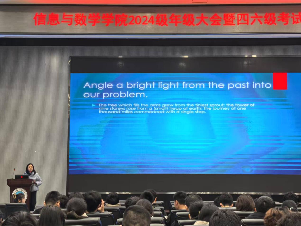 (通讯员 王雪霏)春和景明,万物勃发,正是奋进逐梦好时节。为帮助同学们明确英语四六级考试目标,掌握有效学习方法,增强备考信心决心,3月12日晚上7点,我院在农科大楼召开英语四六级考试动员大会。院党委副书记谷军和全体大一学生参会,吴朝晖老师主持会议。