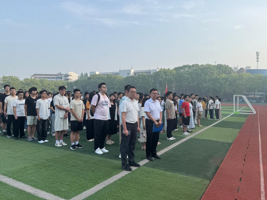 (通讯员 于志浩/文 王晓明 江晓雨 王雪霏/摄)5月19日清晨7时,我院在西校区操场隆重举行“坚守安全底线,厚植优良学风”主题升旗仪式。院党委副书记谷军、学工办主任姜曼、团委书记黄何、辅导员吴朝晖与全体大一学生齐聚绿茵场,以庄严仪式筑牢安全防线、共筑学风建设新高地。本次活动由龚思彤同学主持。