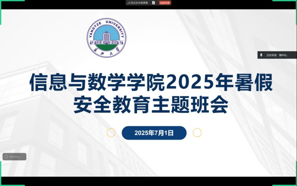 (通讯员 黎璐)为了提高同学们的安全意识,增强自我保护与防范能力,确保每位同学能够平安顺利度过假期,我院于7月1日举办了线上安全教育班会。本次会议由陶中礼主持,会议内容从多个角度出发,帮助同学们提升了自我防范能力。