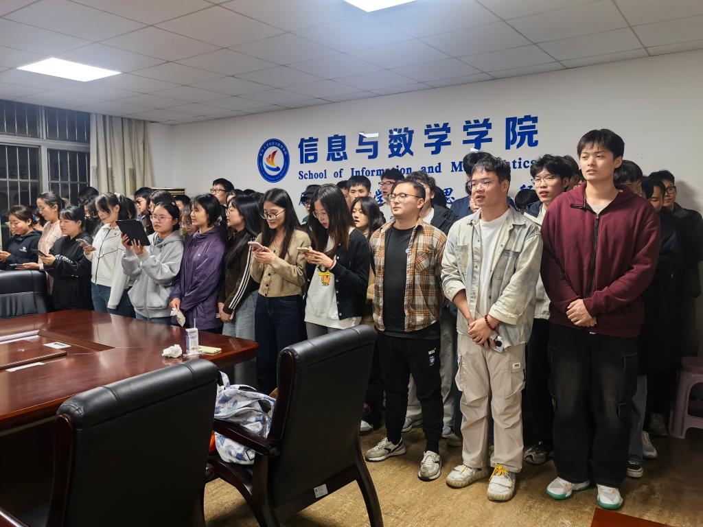 (通讯员 张又恒)为传承学校精神文脉,厚植新生爱校荣校情怀,进一步增强2025级研究生对学校的认同感与归属感,近日,信数学院于东校区8教210会议室组织开展2025级研究生新生校歌传唱活动,以歌声为载体,让校园精神在新生群体中落地生根。