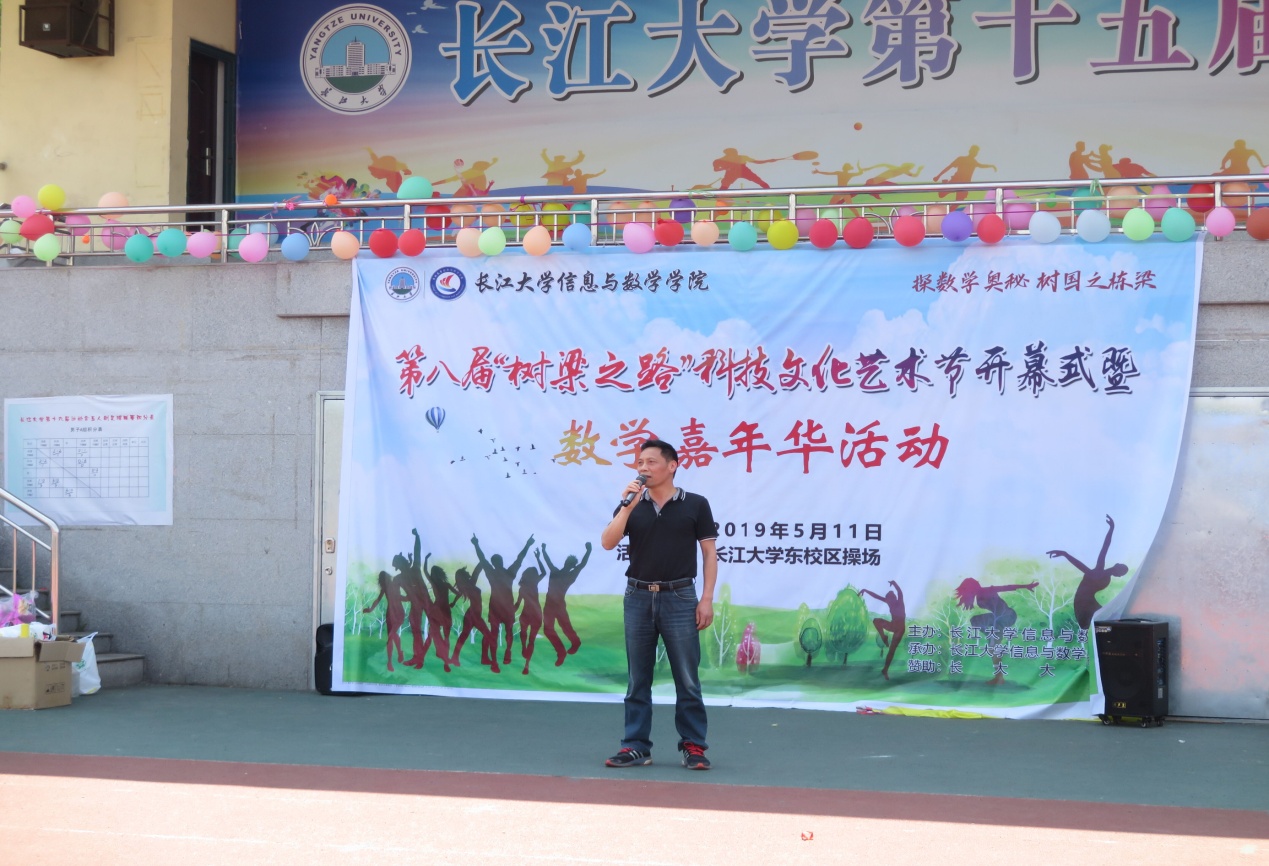 (通讯员 汪志东) 芳菲五月,花团锦簇,绿树成荫。为营造浓厚数学文化氛围,开拓广大学生数学视野,5月11日下午,我院第八届“树梁之路”科技文化艺术节开幕式暨数学嘉年华活动在东校区田径场隆重举行。院党委书记高迎斌、副书记袁海山、院团委书记严星、辅导员钟赛、院系教师代表及长大大数据赞助商彭斌出席活动开幕式。
