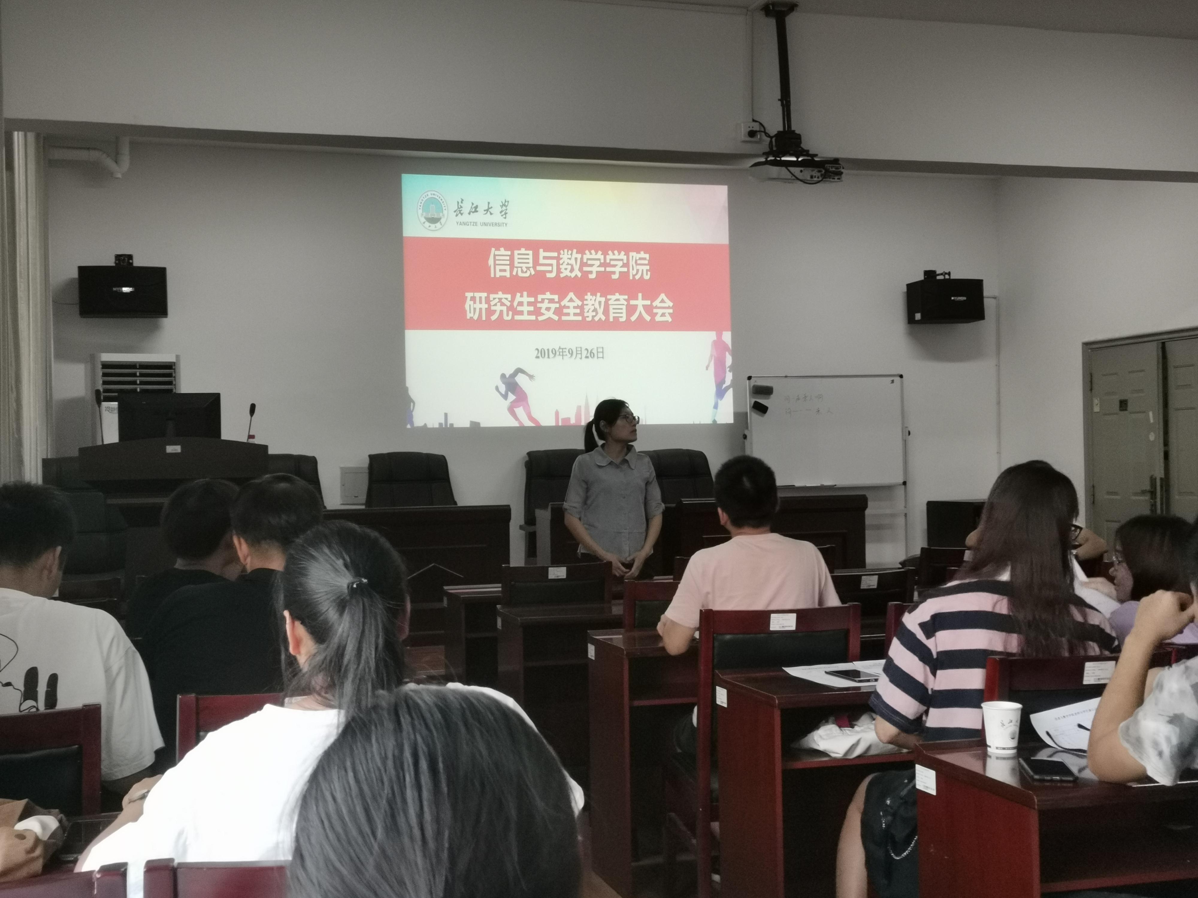 为增强研究生在国庆假期期间的安全防范意识,提高研究生的安全防范能力,全面普及校园安全常识,2019年9月26日,我院在8教406教室顺利召开研究生安全教育大会。院党委副书记袁海山,研究生辅导员严星和全体研究生参加会议,会议由研究生辅导员严星主持。