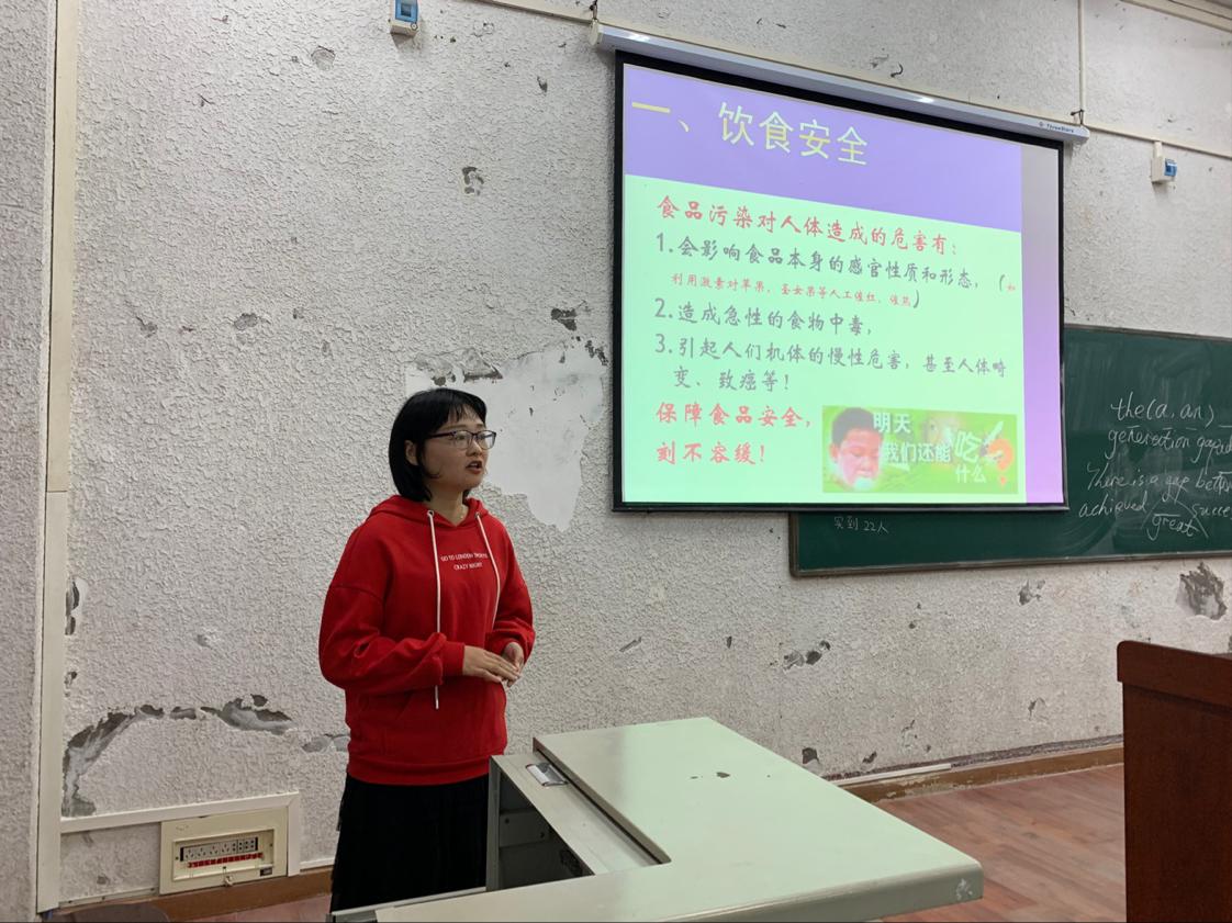 (通讯员 马文 刘睿)为保障大学生在校食宿安全,提高交通安全意识,11月8日晚7:00,我院于西校区5教203室召开了“大学生食宿与交通安全讲座”,本次讲座由经济与管理学院辅导员任玉婷老师主讲,我院全体2019级本科生参加。