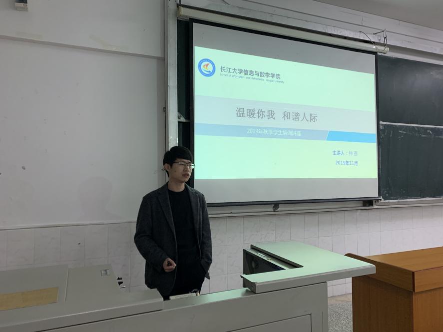 (通讯员 刘睿)为了普及心理健康教育知识,营造良好的学习氛围,我院于11月26日晚上7:00在西校区五教215室召开“新生骨干心理培训讲座”,本次讲座由我院辅导员钟赛主讲,我院全体2019级班委、寝室长及学生会成员参与培训。