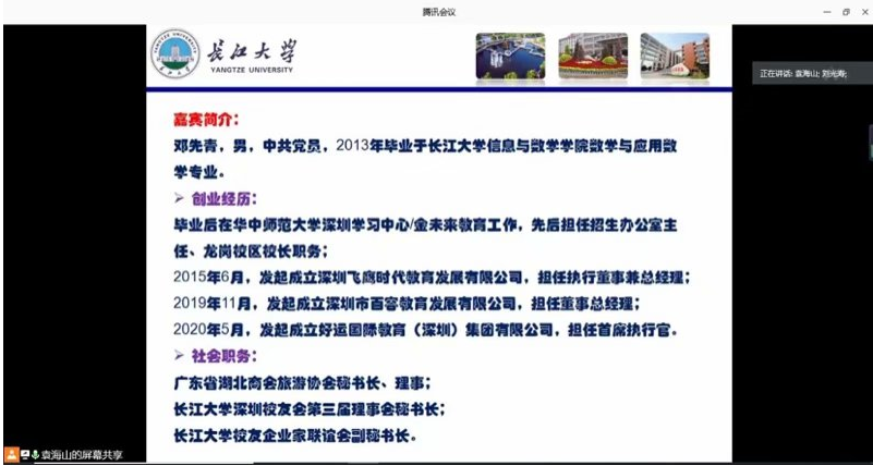 (通讯员 丁伟怡 代雅诗)为发挥优秀校友的榜样示范作用,增强yl6809永利集团学生对于就业的了解,我院特于6月6日下午2:30召开了“线上优秀校友报告会”。参与此次会议的有院党委副书记袁海山,团委书记严星,大三、大四全体学生,特邀数学与应用数学专业09级校友邓先青为同学们分享就业经验。本次会议由袁海山书记主持。