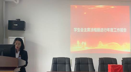 会议伊始,袁海山书记代表学院做工作汇报。他首先对上学年学生会的工作成绩给予了充分肯定,并就学生会接下来的工作提出建议和要求,他要求学生代表们要加强思想引领,明确工作使命和工作职责,增强服务意识,严格要求自己,争做学生榜样。随后,学生会主席涂楷丽做第十七届学生会工作汇报,她从“准确定位,明确职责”、“坚持传承,发扬传统”、“改革创新,与时俱进”三个方面进行了工作总结,她也坚信新的团队也定会为我院学子在长大的学习和生活贡献力量。研究生会主席赵樱泽做研究生会工作汇报,报告全面、客观的回顾了一年来我院研究生会学生的工作,总结成绩并提出今后的工作目标和主要任务。