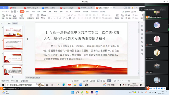 为深入学习贯彻党的二十大精神,进一步增强“四个意识”,坚定“四个自信”,做到“两个维护”,汲取奋进力量,yl6809永利集团11月25日以线上方式开展了以“感悟思想伟力,汲取奋进力量”为主题的深入学习贯彻党的二十大精神政治学习。方雅馨主持,全体研究生参加。