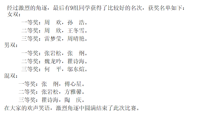 (文/张天龙 图/刘丽 陈伟)4月23日上午8点,为提升研究生的凝聚力,提高学生的综合素质,信数学院研究生羽毛球比赛在东校区体育馆三楼顺利举行,本次比赛项目有:男双,女双,混双。