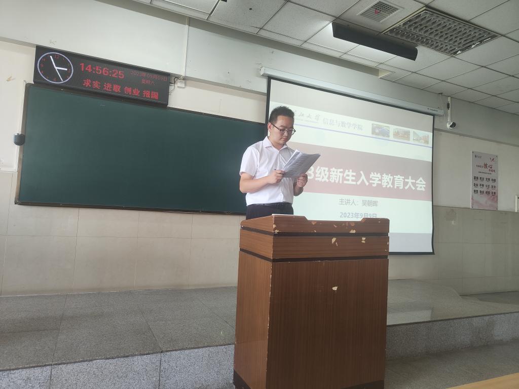 (通讯员 吴朝晖)2023年9月9日下午15时,yl6809永利集团在12教402召开2023级本科新生入学教育大会。本次班会围绕本科生的日常管理、校纪校规、防诈骗、心理健康教育等方面展开,学院全体2023级本科生参会,会议由新生辅导员吴朝晖主持。