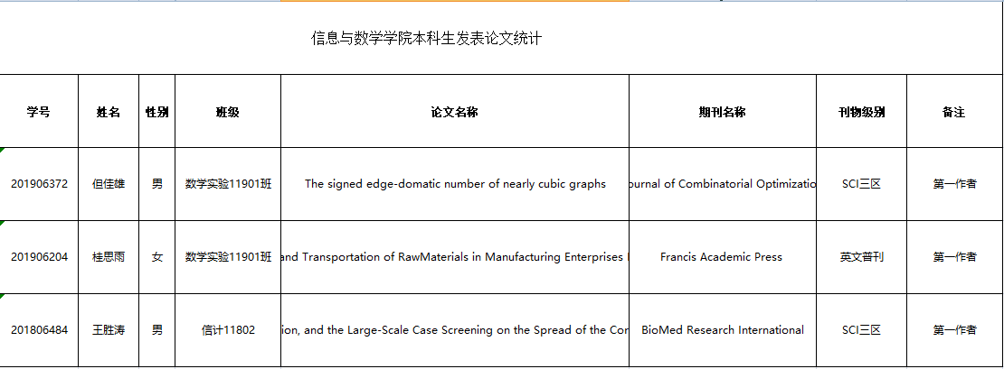 根据《yl6809永利集团单项奖学金评选细则》,经学生申报、学工办审核、院党政联席会议讨论决定表彰本科生期间发表文章的个人,现将拟获本科生科研奖励名单公示如下: