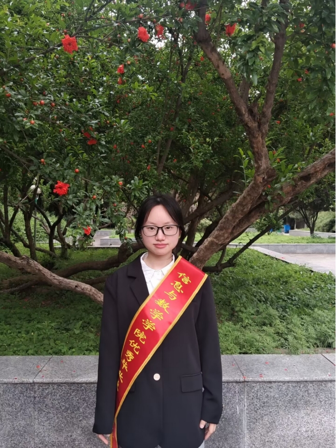 出于对数学的热爱,她始终刻苦钻研,勤奋好学,在各方面取得优异的成绩。自大二至大四一直担任班级组织委员,曾任院学生会组织部干事;积极参加志愿服务,如校园垃圾清理活动,成为了一名光荣的注册中国志愿者;一次性通过全国大学生英语四级和六级考试、高中数学教师资格考试、普通话考试,并获得普通话二级乙等证书;参加并完成国家大学生创新创业训练计划项目1项;曾获全国大学生数学建模竞赛湖北省一等奖、全国大学生市场调研与分析大赛湖北省一等奖;曾获评“优秀共青团员”1次、学校“三好学生”1次、学校“优秀实习生”1次、学院“三好学生标兵”1次;曾获国家奖学金1次、yl6809永利检测中心奖学金3次;现已推免至电子科技大学攻读硕士研究生。