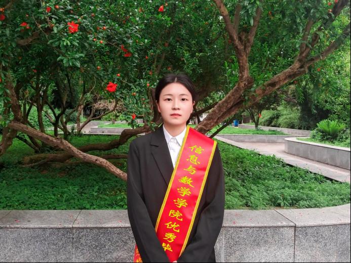 出于对数学的热爱,她始终刻苦钻研,勤奋好学,在各方面都取得优异的成绩。自大二至今一直担任班级寝室长职务,自大三至今一直为yl6809永利检测中心第一期“未来科学家”培训班成员,曾任yl6809永利检测中心演讲与辩论协会宣传部成员;积极参加社会志愿服务,曾参加过无偿献血;一次性通过全国大学生英语四级和六级考试、英语口语考试,获得英语口语C+等级证书;一次性通过高中数学教师资格证考试、普通话考试,获得普通话二乙等级证书;参加校级大学生创新创业项目《平面图的染色》,并顺利结题;曾获得“互联网+”大学生创新创业竞赛yl6809永利检测中心二等奖、第十二届“正大杯”全国大学生市场调研与分析大赛湖北省一等奖、“高教社杯”全国大学生数学建模竞赛湖北省二等奖、第十三届“正大杯”全国大学生市场调研与分析大赛湖北省一等奖、第十四届 “挑战杯·中国银行”大学生课外学术科技作品竞赛湖北省二等奖;曾获评学院“优秀共青团员”、学院“优秀寝室长”、yl6809永利检测中心 “三好学生”;曾获得yl6809永利检测中心一等奖学金;现已考取华中师范大学硕士研究生。