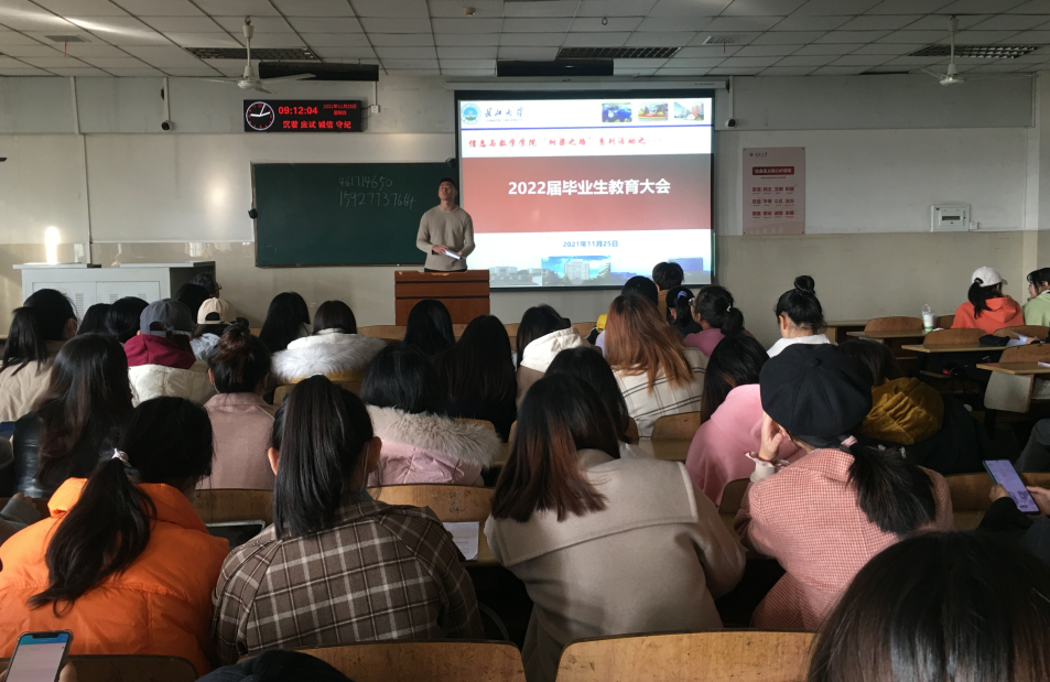 (通讯员 唐漫)11月25日上午8:30,yl6809永利集团2018级毕业生教育大会暨校友报告会在12教202圆满召开。出席本次会议的人员有院党委副书记袁海山、学工办主任严星、辅导员黄何以及2018级全体毕业生。本次大会由院党委副书记袁海山主持。