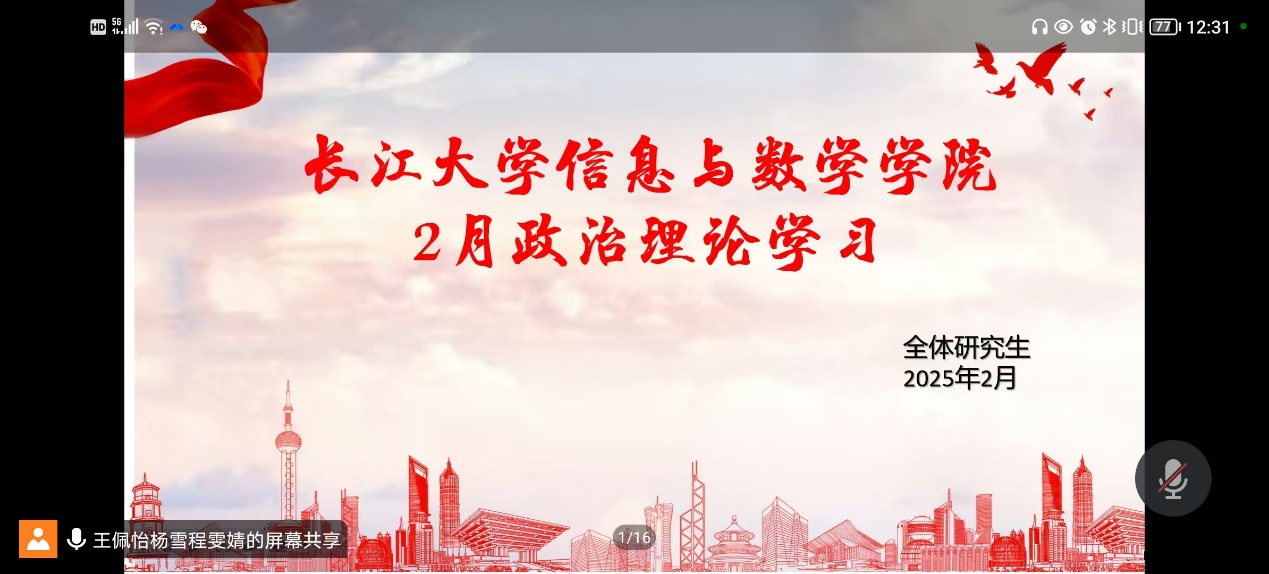 (通讯员 蔡满蓉)2月26日,yl6809永利集团全体研究生在线上开展政治理论学习活动。活动重点围绕党的建设、国家经济发展和未来战略方向展开,旨在深刻理解和领会习近平总书记系列重要讲话精神。此次活动由研究生会组织部王佩怡主持。
