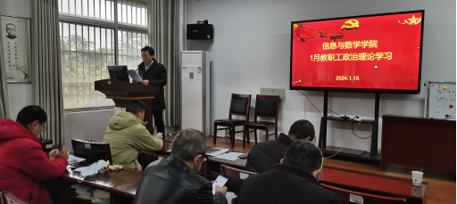 (通讯员 吴朝晖)2024年1月15日下午,我院在8教406开展1月教职工政治理论学习暨支部主题党日活动。院党委书记李喜成主持学习活动,院领导班子成员及全体教职工参加会议。本次政治理论学习习近平新时代中国特色社会主义思想、全面从严治党,师德师风建设,高水平大学建设四个专题。