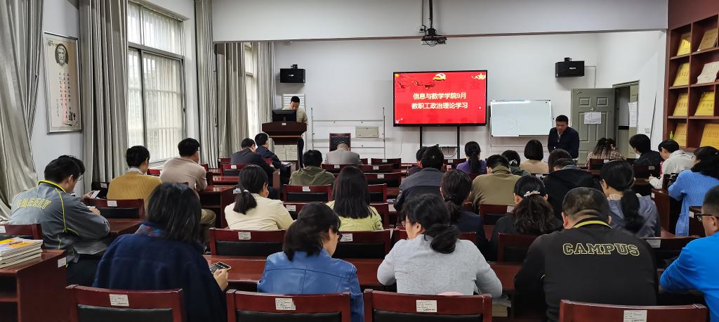 2023年9月28日下午,我院在8教406开展9月教职工政治理论学习。学院党委书记李喜成主持学习活动,院领导班子成员及全体教职工参加会议。本次政治理论学习内容包括习近平总书记最新重要讲话、重要指示批示和文章精神、学习贯彻习近平新时代中国特色社会主义思想主题教育、师德师风建设和高水平大学建设四个专题。