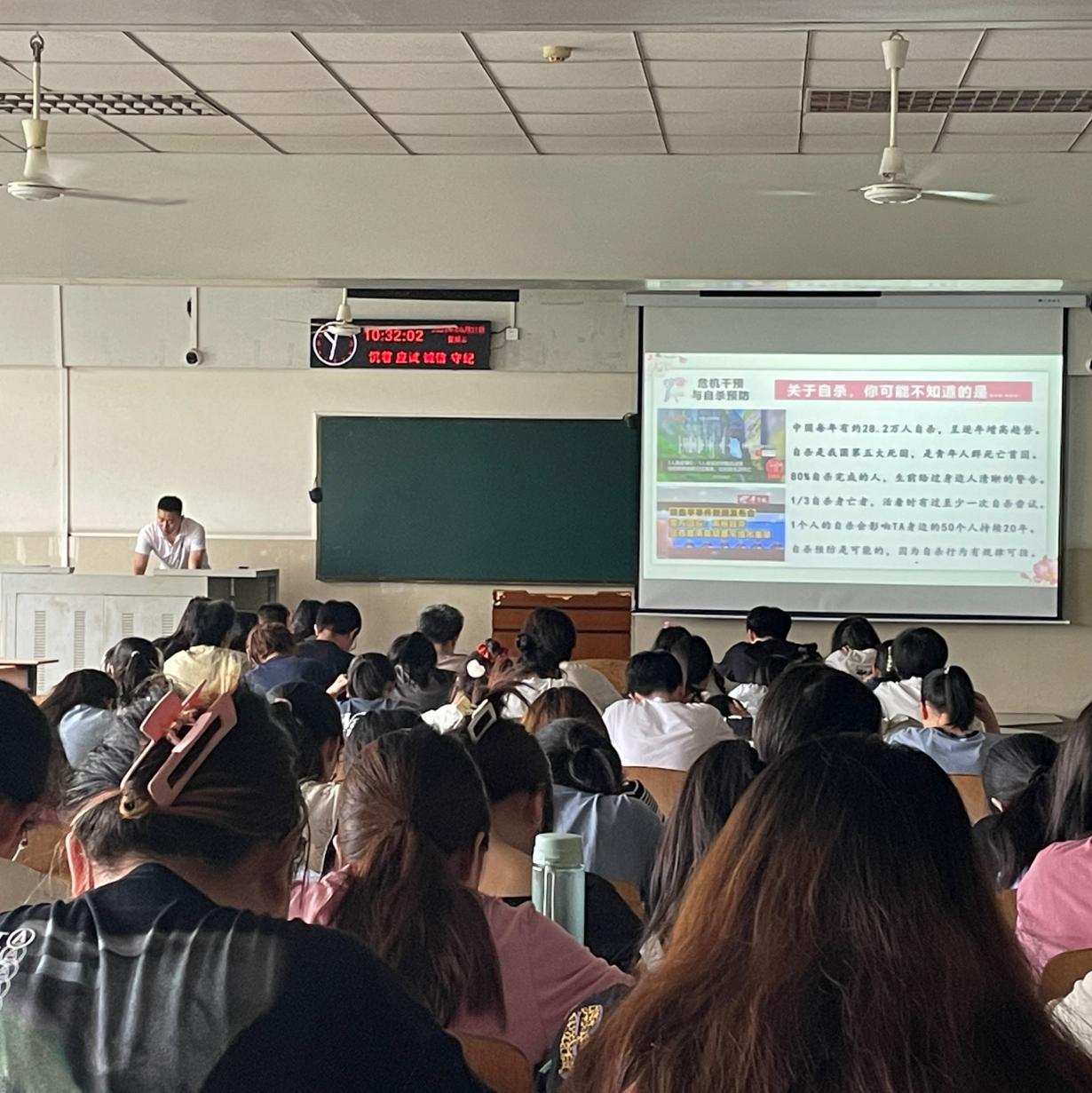 然后,从心理危机这个点出发,引出其特征、反应及类型。黄老师以日常生活中的例子让同学们明白怎样预防及解决心理危机,不仅点明了大会的主题,而且吸引同学们继续听下去以获得更多关于心理方面的知识。