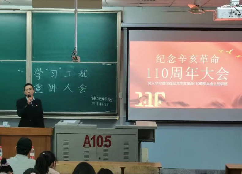 (通讯员 范文文)为重温辛亥革命中先辈们的红色精神,我院于11月28日上午九时在13教A105教室举办了学习工程宣讲大会。此次宣讲大会由学工办主任严星以及我院所有党员,预备党员、入党积极分子和发展对象与会,院党委副书记袁海山主讲。