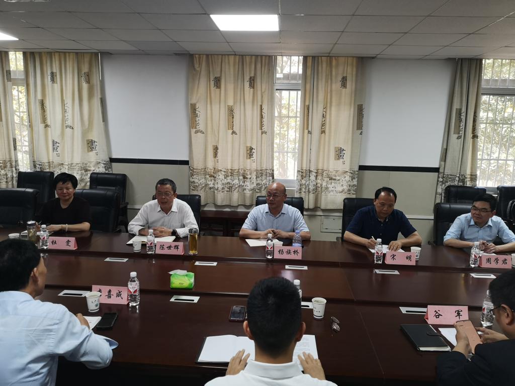 (通讯员 邹健)4 月 27 日,黄冈师范学院数学与统计学院党委书记陈世辉、院长杨族桥等一行 5 人莅临我院进行调研交流。我院党委书记李喜成、院长张涛以及学院领导班子成员热情接待了陈世辉一行,并共同参与了座谈交流活动。
