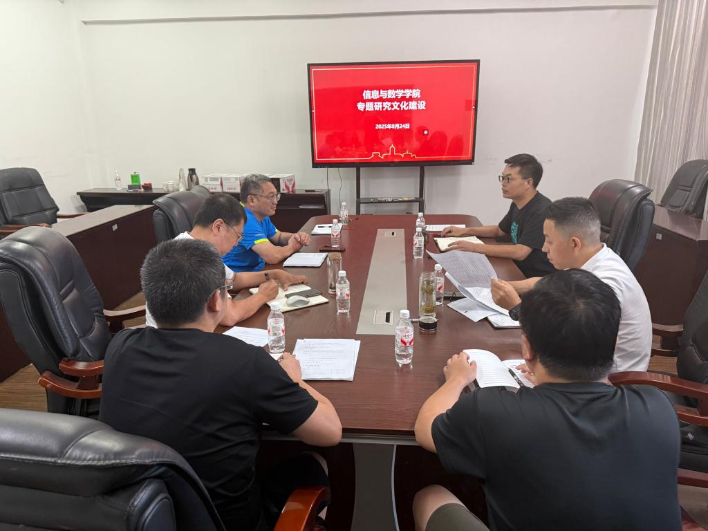 会议指出,文化建设旨在塑造一种浸润发展的氛围、一种引领向上的精神、一种共同恪守的价值观,是一项需要长期坚持的系统工程。要强化精神文化引领,深入挖掘与弘扬数学学科的深厚底蕴与优良传统,将学院的办学理念、院训精神以及优良的院风、教风、学风深度融入日常教育教学与管理服务全过程,增强师生的认同感、归属感和自豪感。要夯实制度文化保障,优化完善教学、科研、管理等方面的规章制度,营造公平公正、宽松和谐、潜心治学的制度环境。要丰富文化活动载体,持续提升“树梁文化节”、“求实导师讲坛”、数学竞赛等品牌活动的内涵与影响力,激发学生学术志趣,浓厚创新氛围。要优化环境文化阵地,科学合理规划与建设好党员之家、学术沙龙室、数学阅览室、健康之家等多功能空间,满足师生多元化的学习、工作与交流需求,实现环境育人功能。