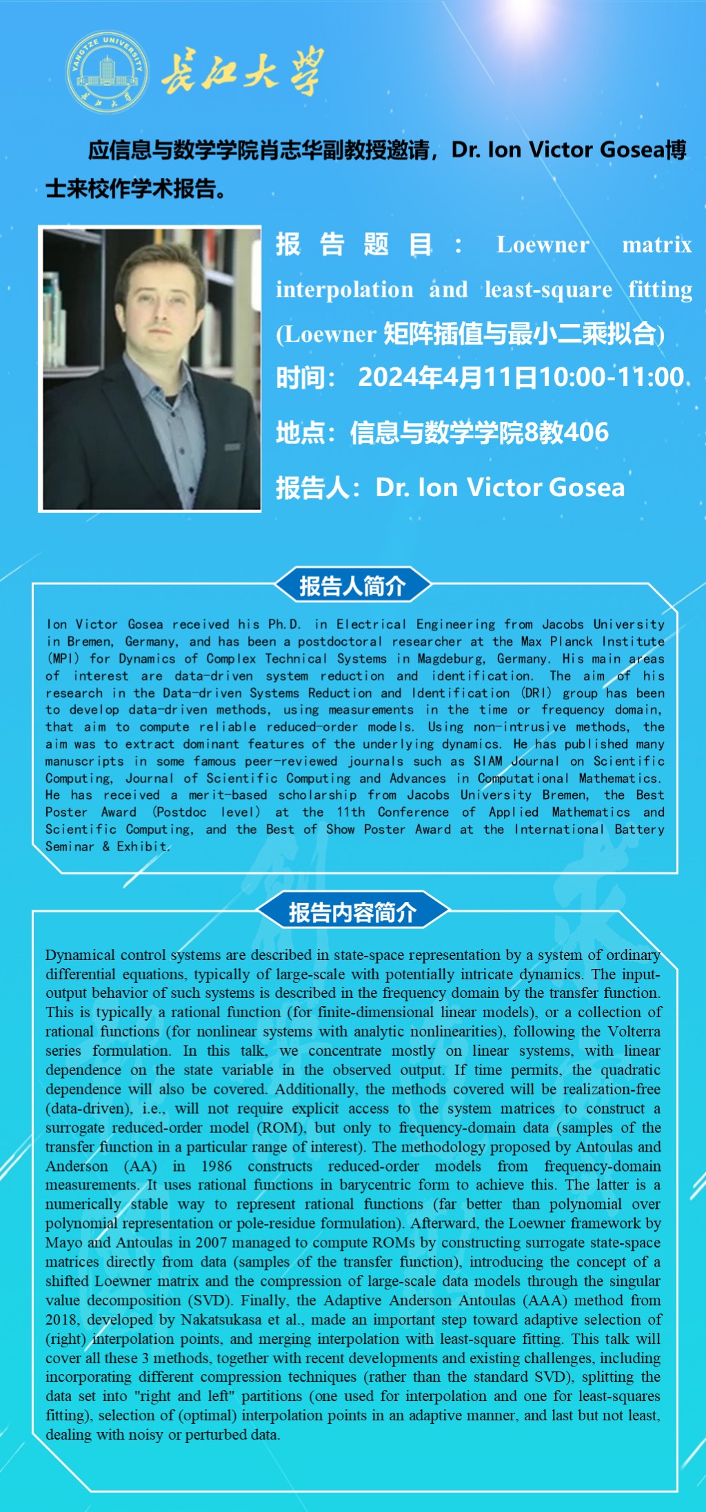 报告人 Dr. Ion Victor Gosea 报告时间 2024年4月11日10:00-11:00