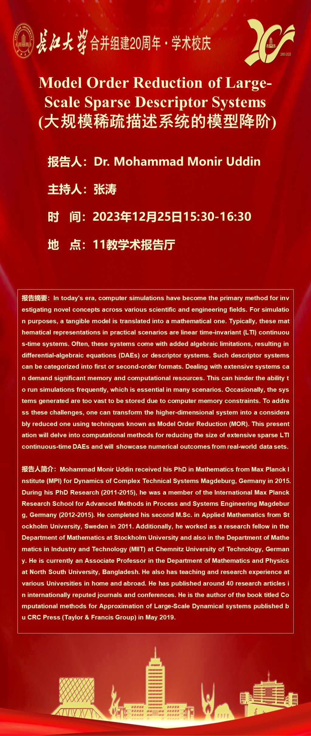 报告人 Dr.Mohammad Monir Uddin 报告时间 2023年12月25日15:30-16:30
