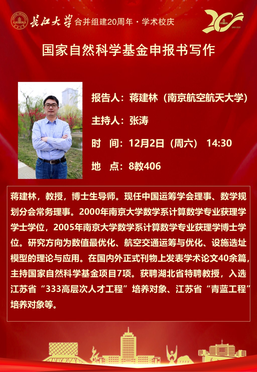 报告人 蒋建林(南京航空航天大学教授、博士生导师) 报告时间 2023年12月2日14:30