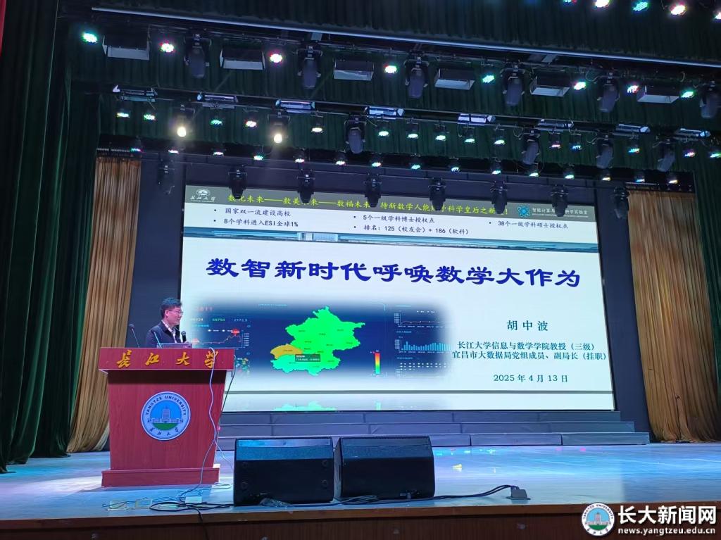 yl6809永利集团三级教授,宜昌市数据局党组成员、副局长(挂职)胡中波作《数智新时代呼唤数学大作为》专题讲座。胡中波结合智能港口货运自动化、无人驾驶、AI智慧农业案例,阐述数学在人工智能、大数据分析等领域的核心支撑作用。“从智能医疗诊断到金融风控模型,从神经网络到大模型融汇数据集,数学正逐步成为驱动社会进步的隐形引擎。”但大模型技术的标准化,让所有企业的策划大同小异,给出能打动客户的差异化技术白皮书反而成为未来一段时期的新痛点。胡中波通过两次数学危机的历史讲解,结合现如今的大模型人工智能的兴起,告诉同学们现在的数学正面临着新机遇。他强调,数学不仅是技术的基石,更是创新和差异化竞争的源泉,掌握数学思维将帮助我们在未来的科技浪潮中占据先机。