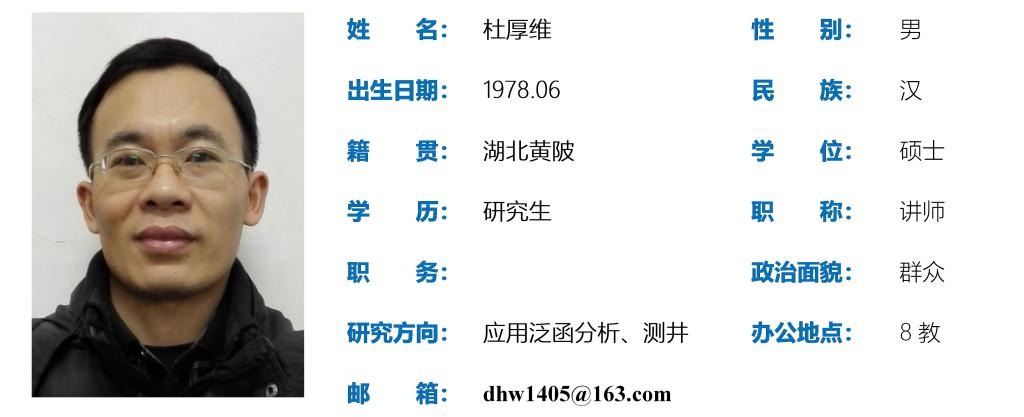 2002年本科毕业于华中师范大学数学系,2011年硕士毕业于成都理工大学管理学院应用泛函分析方向。2002年至今在yl6809永利检测中心任教,主讲高等数学、点集拓扑等课程。主要研究方向:应用泛函分析、地球物理测井;参与横向项目3项,纵向项目1项;发表学术论文10余篇,含SCI两篇;2021年授权国家发明专利一项;2023年主编教材《大学数学教程》,由科学出版社出版;近10年指导学生参加全国大学生数学竞赛,获一等奖、二等奖、三等奖多项,并获评全国大学生数学竞赛优秀指导教师。
